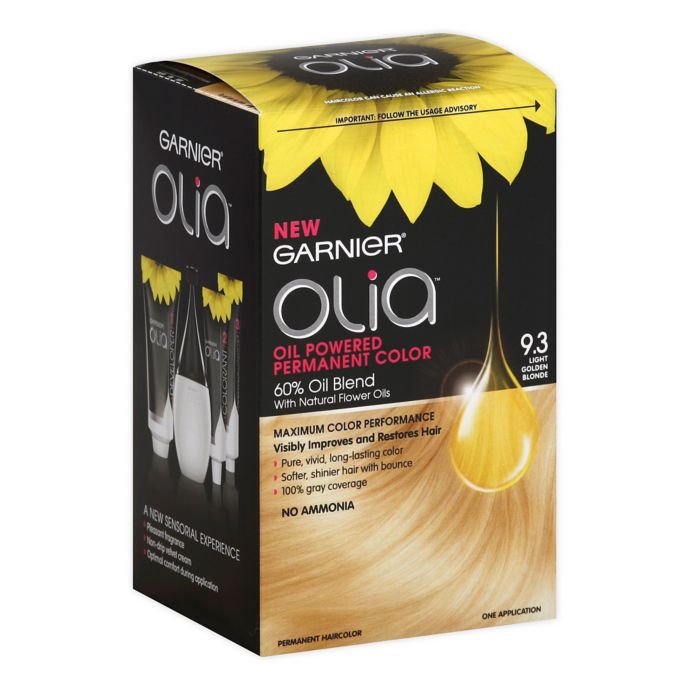 Garnier olia 9 3 golden light blonde permanent hair dye garnier olia 3 92 see all 75 reviews discover the first oil powered and ammonia free permanent home hair colour for a maximum colour performance and a visible improvement of hair quality.