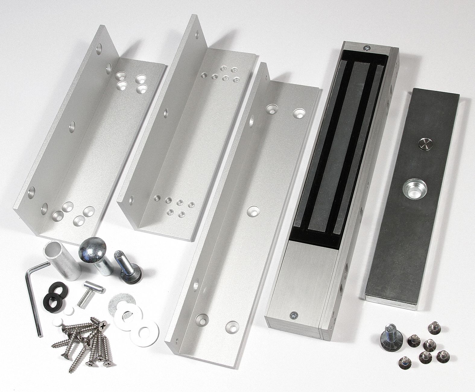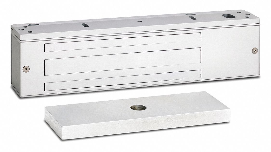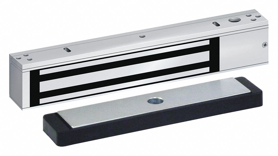 Electromagnetic locking systems consist of a frame mounted magnet and a door mounted armature that create a powerful magnetic bond to secure doors.